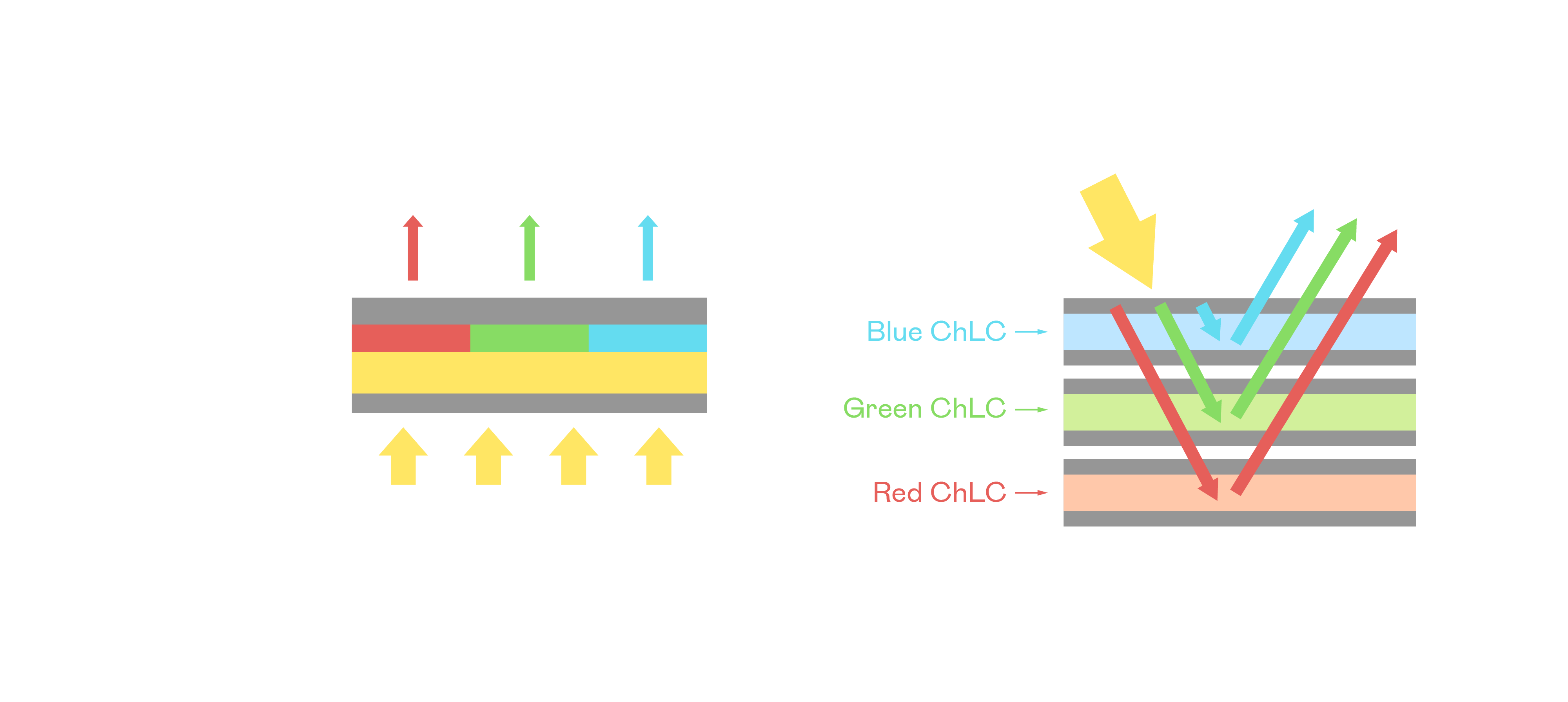 ChLCD 膽固醇液晶就如同紙張一樣,透過反射環境光來顯示影像,因此長時間觀看不易造成人眼視覺疲勞,可達到護眼效果。當處於戶外陽光下使用,LCD 影像容易失真而不易觀看,但膽固醇液晶仍可維持較佳的影像品質。